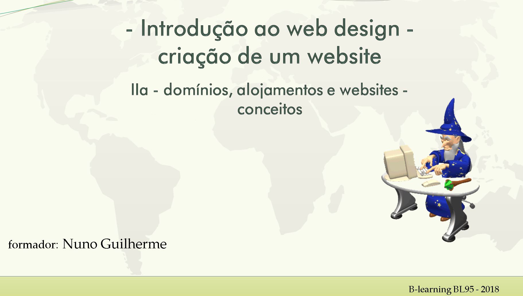 Curso de introdução ao Web design: Criação de um website é um curso de 60 horas que criei com o objetivo de ensinar utilizadores comuns (não especializados) de PC´s a criar um website - pessoal, empresarial, de produto ou loja online. Os objetivos são atingidos através de uma pedagogia clara e explícita, recorrendo a analogias da vida diária de todos nós. Veja o resumo de uma aula, em baixo.